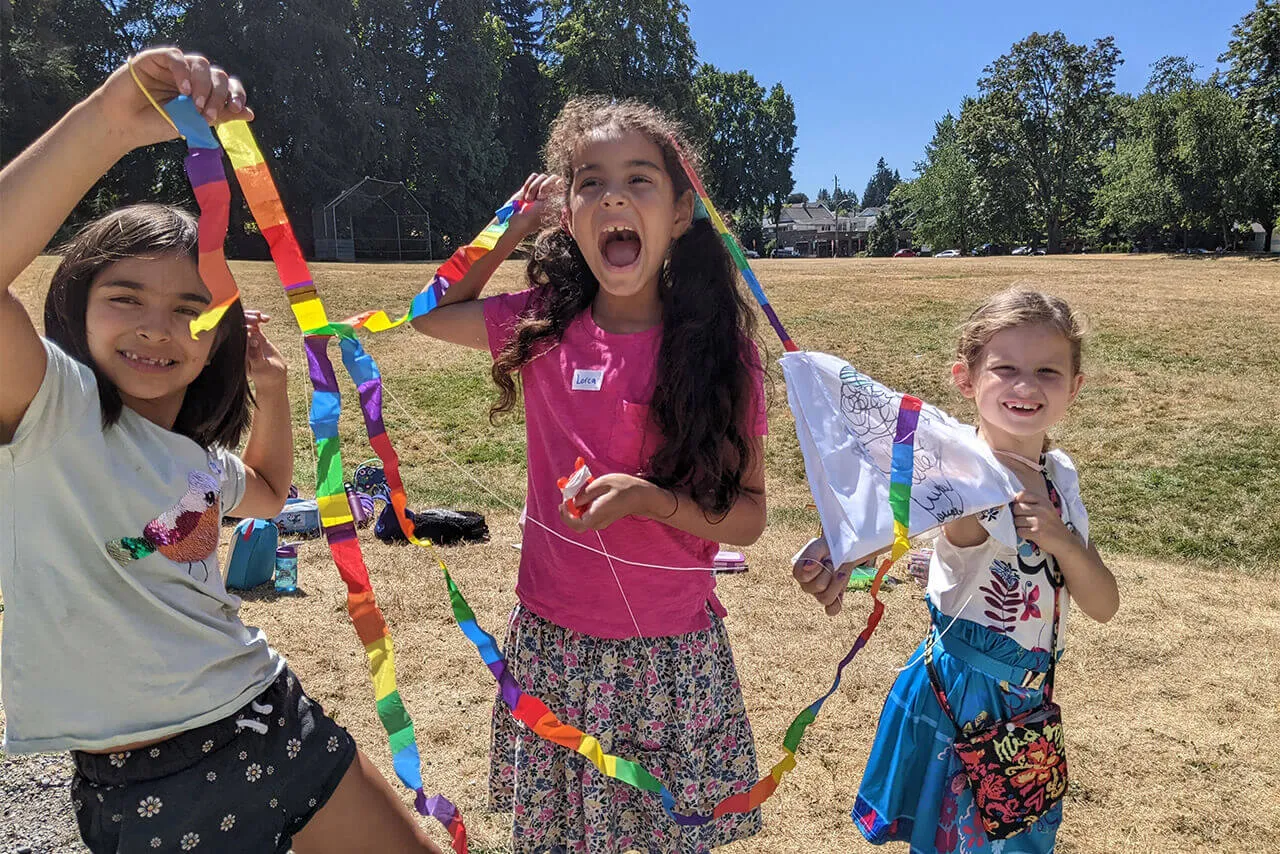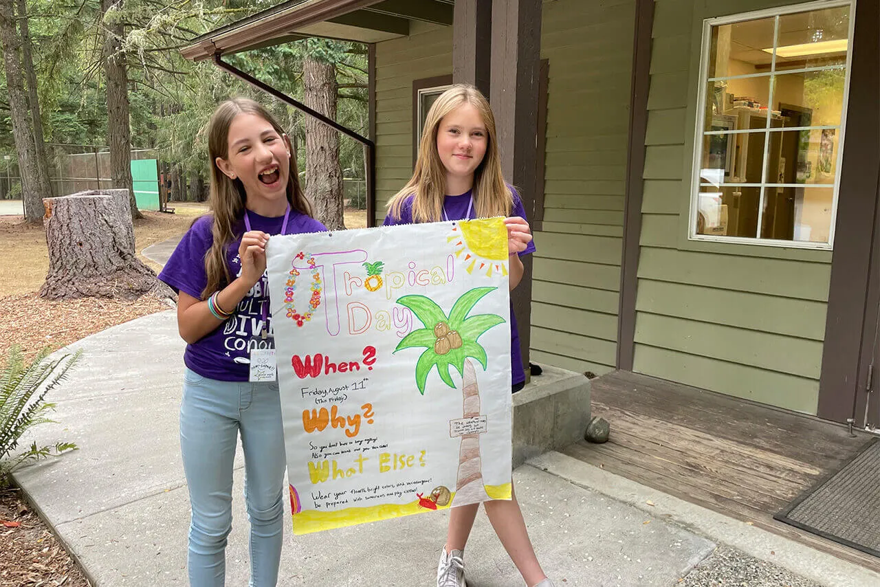 From Silly Socks to Rainbow Day, and everything in between, we love to show our camp spirit every Friday! On Fridays we have a big end-of-the week celebration where we thank and appreciate one another and the staff, and everyone gets a pin for their years at camp.