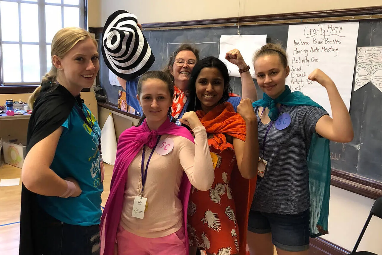 Campers are placed into small groups with a dedicated counselor. This allows campers to get more attention and support during math activities. Our experienced teachers lead and oversee the whole camp class while the counselor works closely with her campers specifically, getting to know them well and helping them grow.